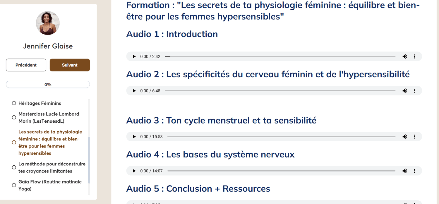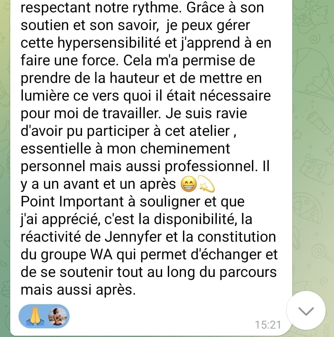 Suite à mes propres expérimentations mais aussi par mes formations avec les meilleurs spécialistes sur l'hypersensibilité, l'estime de soi, le féminin,