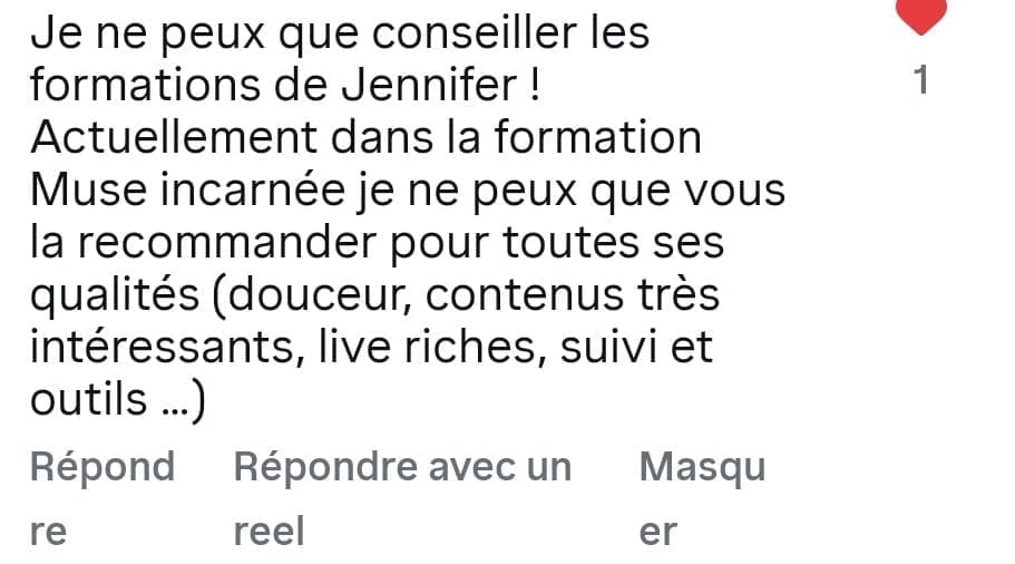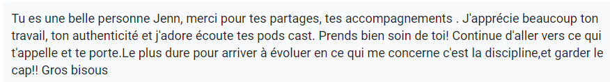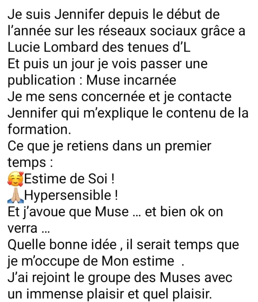 Comme je l'ai dit, Muse Incarnée a une trame précise, c'est intense, enrichissant, ça peut et ça va bousculer (C'est une transformation que tu cherches non ?) bien entendue tu peux aussi y aller à ton rythme, si tu as besoin de plus de temps avant de regarder les prochaines vidéos, c'est aussi la beauté du replay. Garde la discipline, suis la trame même si tu laisses plus de temps entre les sessions, fais tes exercices et voit ta valeur, ta vie changer.