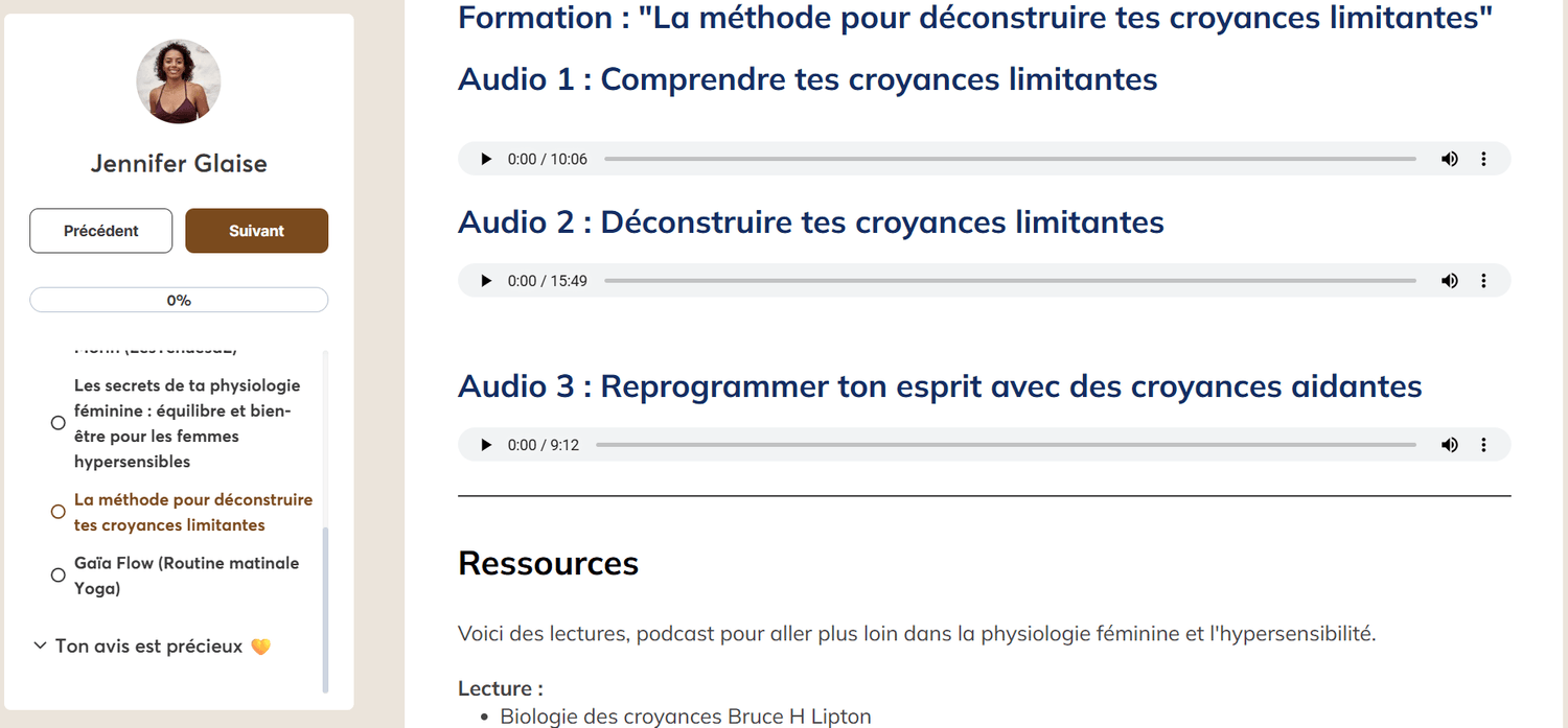 Le format est en autonome, ce qui signifie que tu regardes les vidéos à ton rythme et je n'interviens pas en individuel.