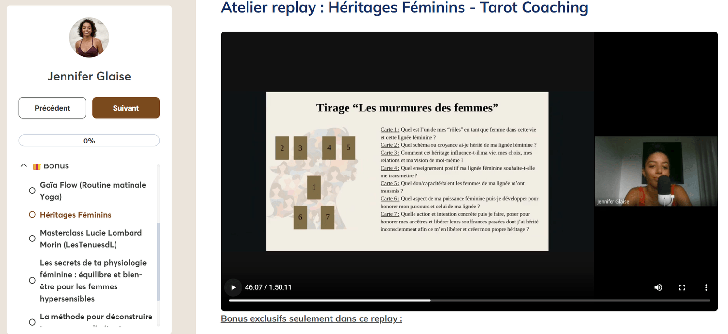 Ce live replay que j'ai donné le 23 Mars 2025 est une plongée guidée au cœur de ton héritage féminin grâce au tarot psychologique, que tu sois débutante ou avancé.